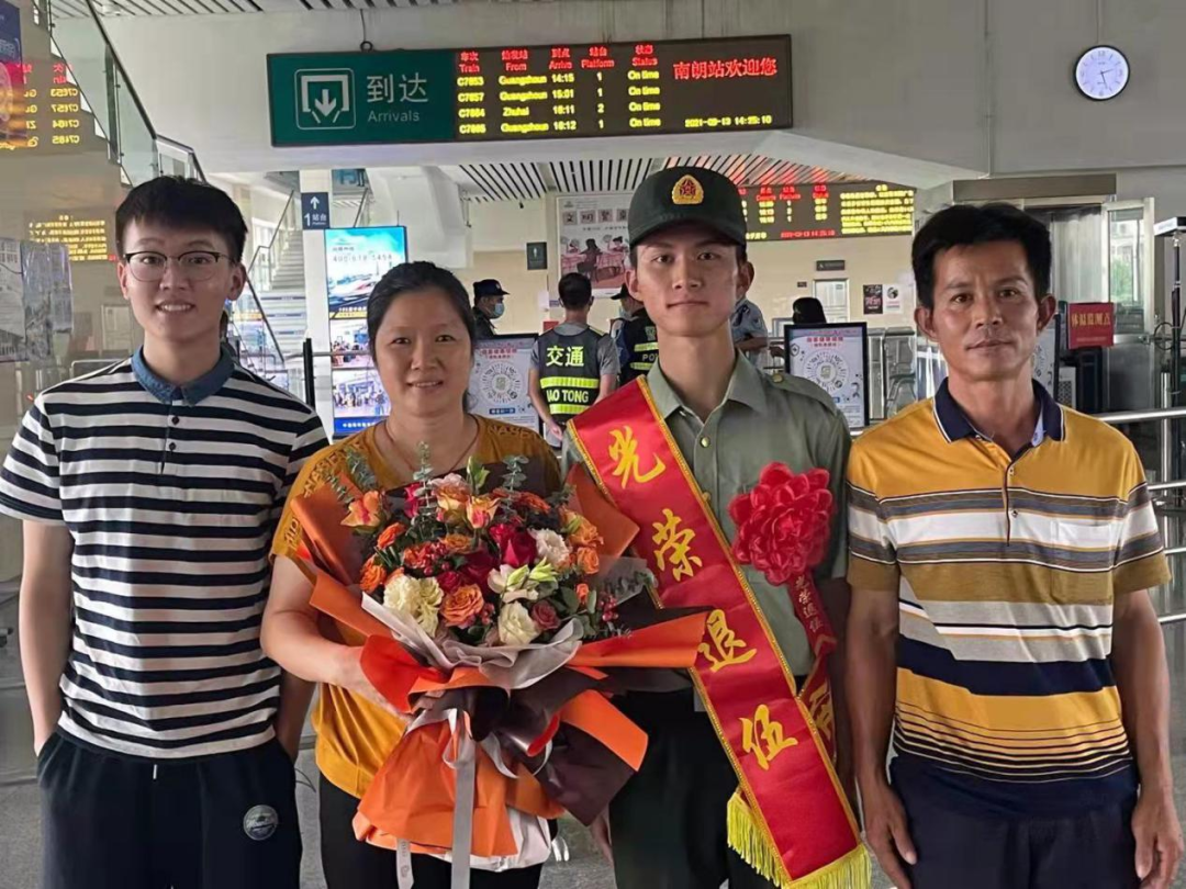 “去時鑼鼓喧天,歸來夾道歡迎。” 九月,正是退役軍人 從祖國各座軍營 返回家鄉(xiāng)的退役季 為營造“一次參軍、一生光榮”的濃厚氛圍 讓退役軍人感受到家鄉(xiāng)人民的熱情和關(guān)懷 激發(fā)老兵退伍不褪色 返鄉(xiāng)建新功的壯志熱情 9月13日下午,五桂山街道2021年首位退役軍人曾世紀(jì)光榮退役返鄉(xiāng)。街道退役軍人服務(wù)中心負(fù)責(zé)人、社區(qū)“兩委”干部、工作人員以及曾世紀(jì)的父母早早手持鮮花,在城軌南朗站等候迎接世紀(jì)回家。 回想2019入伍歡送大會時曾世紀(jì)代表五桂山即將入伍的新兵作表態(tài)發(fā)言,那年,他主動請纓,到艱苦邊遠(yuǎn)地區(qū)服役。“參軍不僅是個人的榮耀,也是家人的榮耀,更是鄉(xiāng)親們的榮耀。到了部隊(duì)后我會堅決服從命令,聽從指揮,刻苦訓(xùn)練,勤學(xué)本領(lǐng),絕不辜負(fù)家鄉(xiāng)人民的期望!”