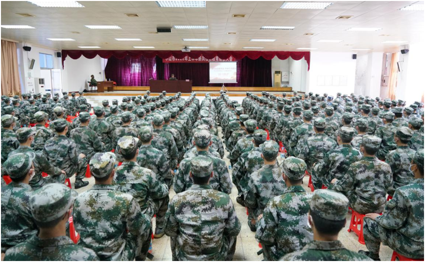 300余名準新兵聚精會神接受教育。 三位不同年代從軍老兵的激情宣講,讓紅色的影子在準新兵腦海中打下深深的烙印,進一步增強了他們獻身軍營、報效祖國的責任感和自豪感。 |