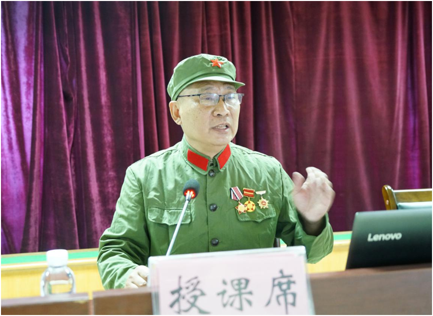 參戰(zhàn)老兵李克為準新兵上“紅色教育”課。 “希望你們迅速融入軍隊這個大熔爐,勇敢接受艱苦環(huán)境的磨練和考驗,為我國的國防事業(yè)作出積極的貢獻!”曾在邊境自衛(wèi)反擊戰(zhàn)中榮立戰(zhàn)時三等功的副營職轉(zhuǎn)業(yè)干部鄭志淦對準新兵們提出了殷切希望。