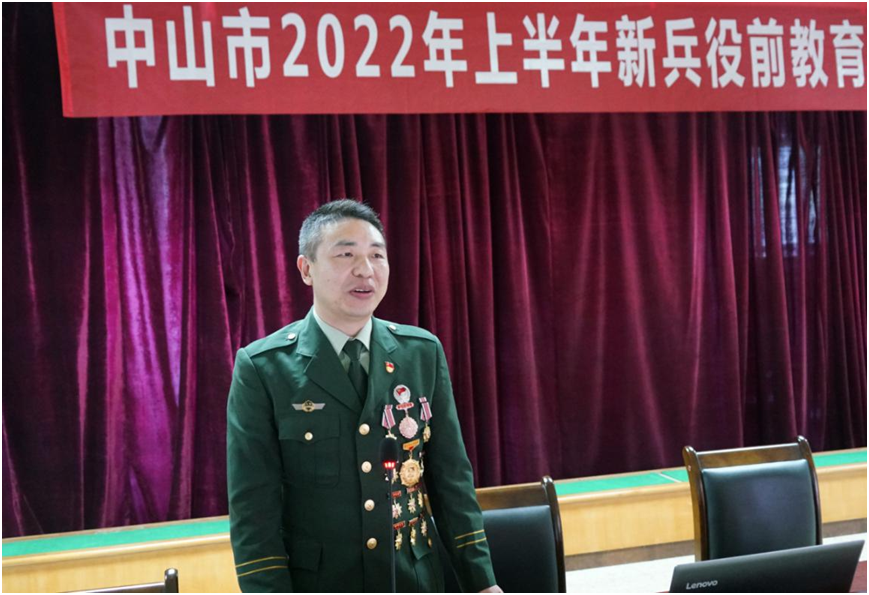 參戰(zhàn)老兵鄭志淦為準新兵分享軍旅故事。 “當兵會流汗,會流血,會流淚,但也會讓你成長,成為一名真正的軍人。它是你成鋼的熔爐,是你起飛的翅膀,會讓你擁有更廣闊的藍天。”在中山邊防支隊服役16年,榮獲2次個人三等功、8次優(yōu)秀士兵、12次各級嘉獎的退役老兵梁華分享了自己多年來的從軍經(jīng)驗,他希望準新兵們提高思想政治覺悟,步入軍營后勇敢磨煉自己,早日成為一名合格的軍人。