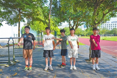 鐘鑫引導同期參軍的另外4名大學畢業生進行體能訓練。記者 易承樂 攝