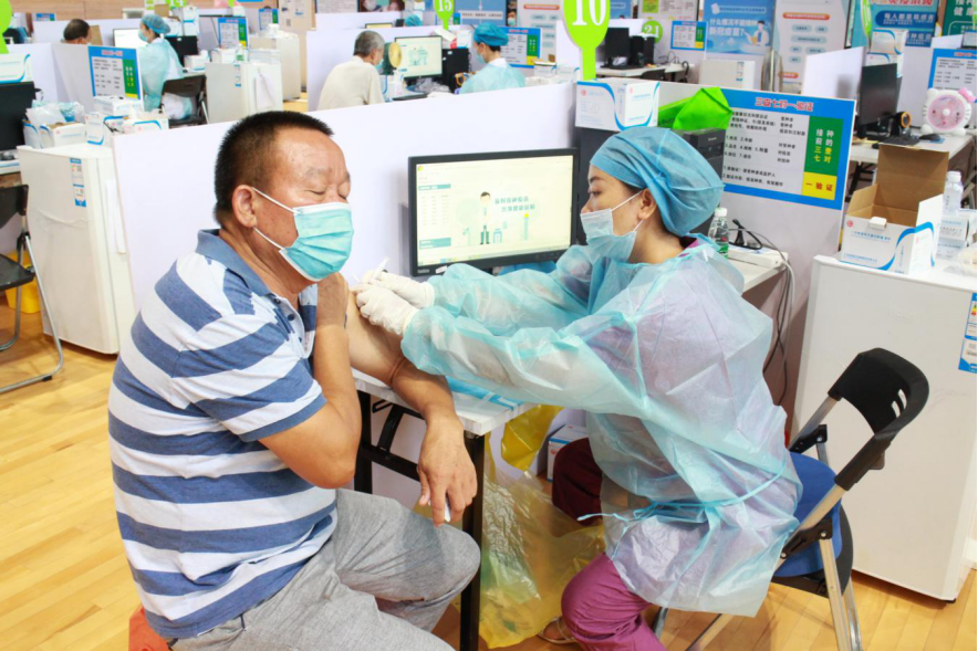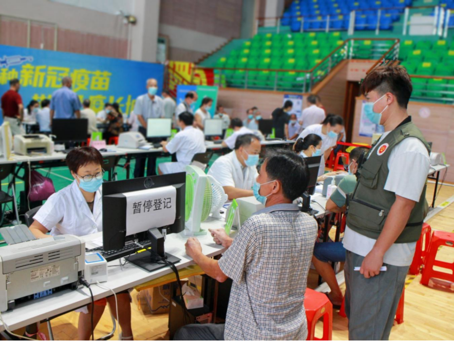 東鳳鎮臨時接種點現日均接種500劑次,在臨時接種點現場,等待接種的重點優撫對象佩戴好口罩,在工作人員和退役軍人志愿者的指引下有序進入接種點。 志愿者們依次指引重點優撫對象們去到咨詢登記區、量血壓區、接種區和留觀區,逐個完成新冠疫苗接種。