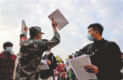 應征青年核酸檢測合格后,在帶檢員的引導下進入體檢環節,全程實行全封閉式管理。