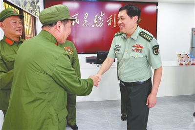 中山軍分區大校政治委員劉燦瑩慰問鎮街退役老兵、基干民兵。