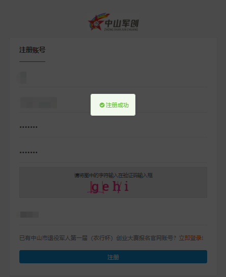 圖1 02 賬號注冊 點擊【注冊】按鈕,按提示輸入帳號相關信息后點擊注冊,當彈框出“注冊成功”,表示注冊賬號成功!如圖2-4所示:
