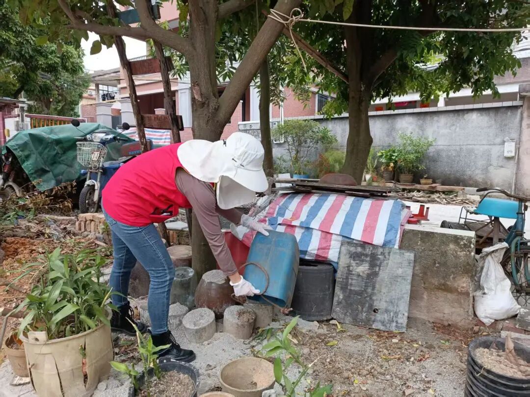 “阿姆,天氣轉涼了些但蚊蟲沒少,這盆托里的積水得及時倒掉,房前屋后的雜物要及時清理,不然容易孳生伊蚊呀。”10月26日,翠亨新區(南朗街道)華照村志愿者小李的身影出現在村民家中,他一邊幫忙清理庭院積水,一邊遞上防蚊宣傳資料。這個周末,這樣接地氣的入戶宣傳場景,在轄區 18個村(社區)同步上演。