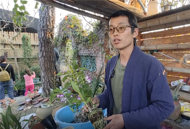 位于高沙花鳥市場中的不舍園內(nèi),圓主李潤正在忙碌著為顧客選購的建蘭和墨蘭上盆,他詳細(xì)地和顧客們傳授著蘭花養(yǎng)護(hù)的要點(diǎn):“最重要是通風(fēng),國蘭最怕爛根,一周淋一次水……”