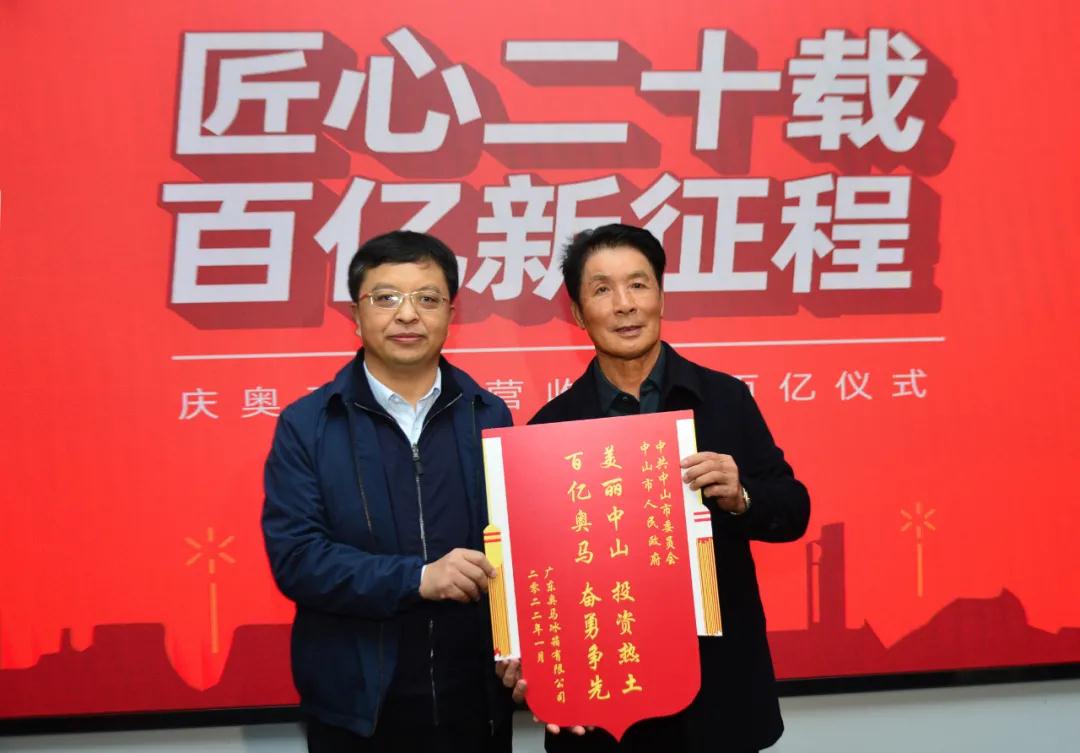 郭文海表示,奧馬20年堅守實業、創新發展、自我超越,終煉成百億奧馬。“我今天參加奧馬百億祝賀儀式,代表市委市政府給奧馬獎勵1000萬元,就是希望中山企業家們學習奧馬堅守實業、堅持創新、艱苦奮斗、不斷自我超越的企業家精神,堅守制造業不動搖、堅持創新不動搖、堅持不斷自我超越不動搖,把企業做大做強。”