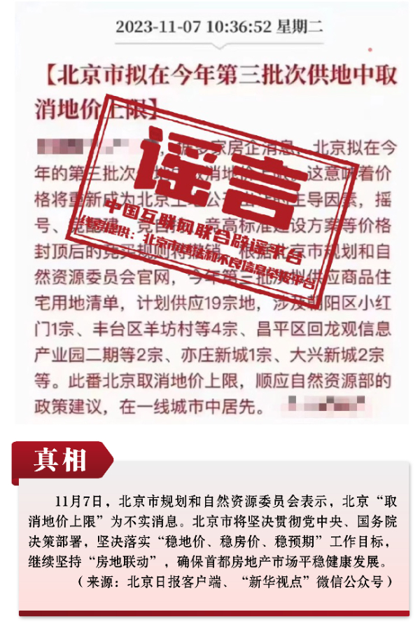 ——中國互聯網聯合辟謠平臺2023年11月辟謠榜綜述