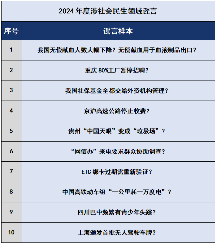 2024年2月,個別自媒體發出“無償獻血人數大幅下降,無償獻血用于血液制品出口”的不實言論,利用全社會對公益事業的關注和信息不對稱誤導公眾,故意抹黑我無償獻血政策,影響血液采集正常秩序,引發公眾對無償獻血的誤解。一些別有用心之人惡意編造謠言“我國社保基金全都交給外資機構管理”,抓住社保基金管理中的部分正常合作進行夸大和錯誤解讀,以偏概全、歪曲事實,引發公眾對社保體系的擔憂和恐慌。還有一些自媒體夸大其詞、虛構數據,捏造謠言“重慶80%工廠暫停招聘”,干擾勞動力市場正常秩序,影響地區經濟發展。所謂“‘網信辦’來電要求群眾協助調查”則實為詐騙分子冒充權威機構行騙,嚴重損害政府部門的公信力。