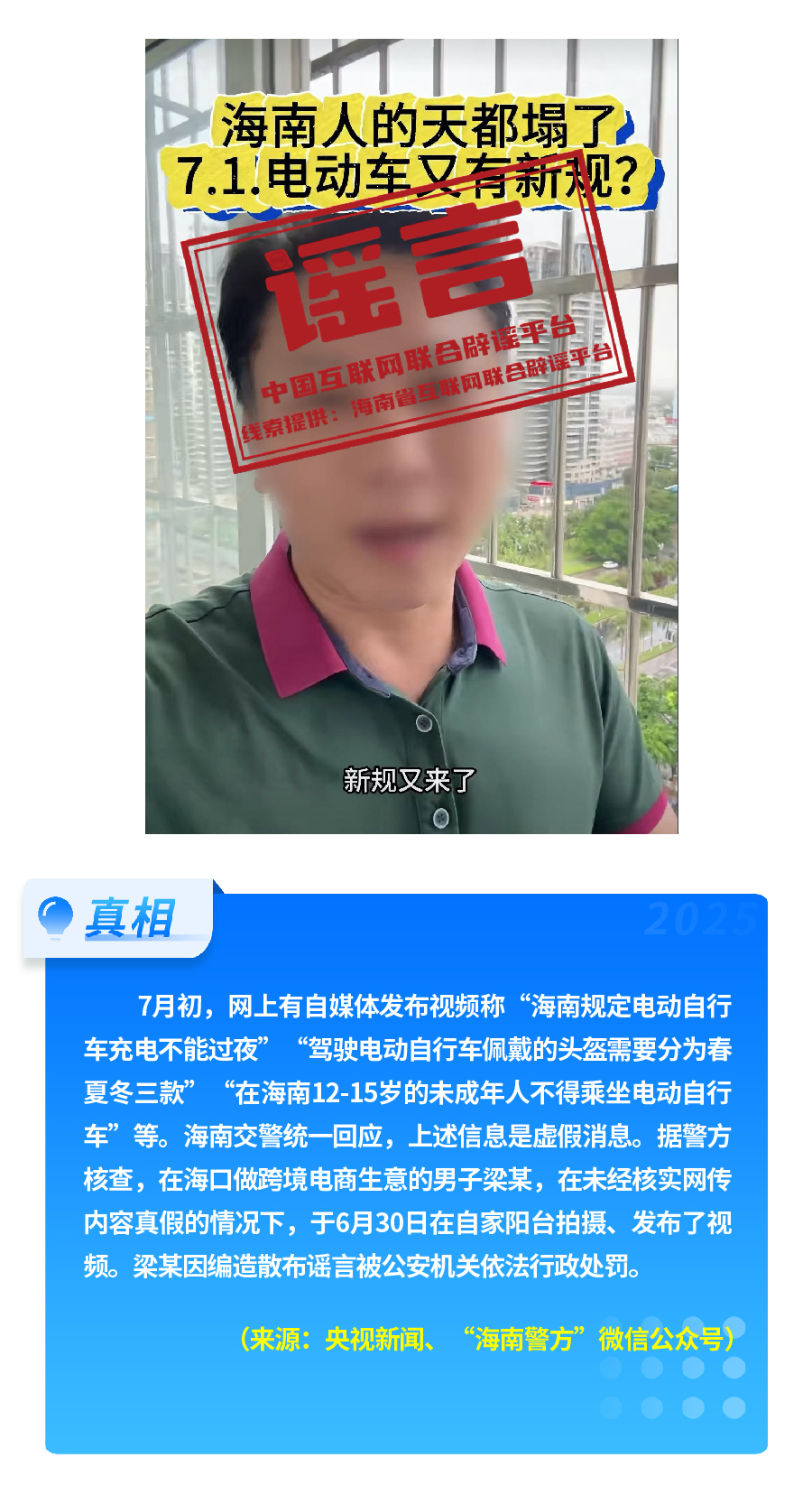 有人重新翻炒“醫(yī)?!畟€(gè)人賬戶’將全部取消”舊謠,故意歪曲醫(yī)保改革真實(shí)內(nèi)涵,嚴(yán)重誤導(dǎo)公眾對醫(yī)保改革政策的理解。“有專人上門服務(wù)激活醫(yī)保碼”,披著“公共服務(wù)”的外衣,實(shí)有詐騙之嫌和安全風(fēng)險(xiǎn)。憑空捏造“海南規(guī)定電動自行車充電不能過夜、頭盔分三季”這一“奇葩規(guī)定”,以“新規(guī)”話術(shù),擾亂交通管理秩序。