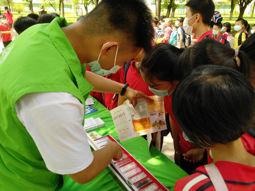 活動現(xiàn)場,擺設(shè)有仿真毒品模型、VR眼鏡的攤位吸引了眾多學生。社工熱情地向?qū)W生講解了毒品的危害和防范新型毒品的有關(guān)知識,呼吁同學們要遠離毒品,珍愛生命。
