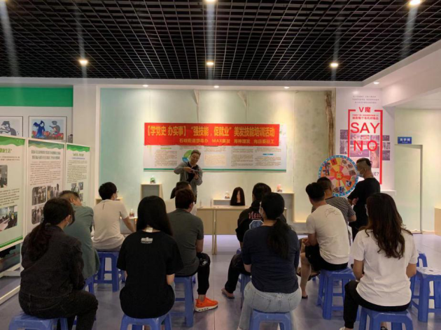 6月5日上午,石岐街道禁毒辦、中山市向日葵社會工作服務中心邀請海神理發店和MAX理發店來到石岐街道心知灣禁毒服務中心開展以“強技能,促就業”為主題的美發職業技能培訓。
