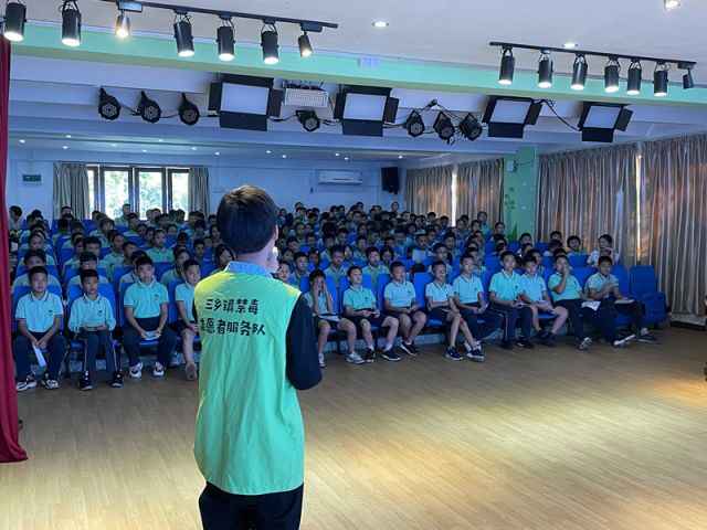為進一步加強學校禁毒宣傳教育工作,預防和減少青少年涉毒違法犯罪,讓學生從思想上樹立禁毒、識毒、拒毒、防毒、遠離毒品的意識。9月7日,三鄉鎮禁毒辦、三鄉鎮禁毒社工服務中心聯合鎮文體教育局開展“遠離毒品,呵護未來”為主題的“禁毒第一課”,與學校共筑防毒墻,共建平安校園。