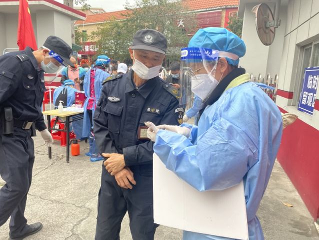 “疫情就是命令、防控就是責任”。三鄉鎮禁毒社工穿上隔離防護衣在核酸檢測采樣點指引居民有序排隊,耐心講解核酸檢測流程,協助居民完成粵核酸個人資料填寫。同時,安撫群眾因排隊時間長而產生的不良情緒,爭取群眾對疫情防控核酸檢測工作的支持和理解,也利用此時間間隙向前來做核酸檢測的群眾傳達如何預防和杜絕毒品,有力提高了居民的禁毒意識和防疫情能力。