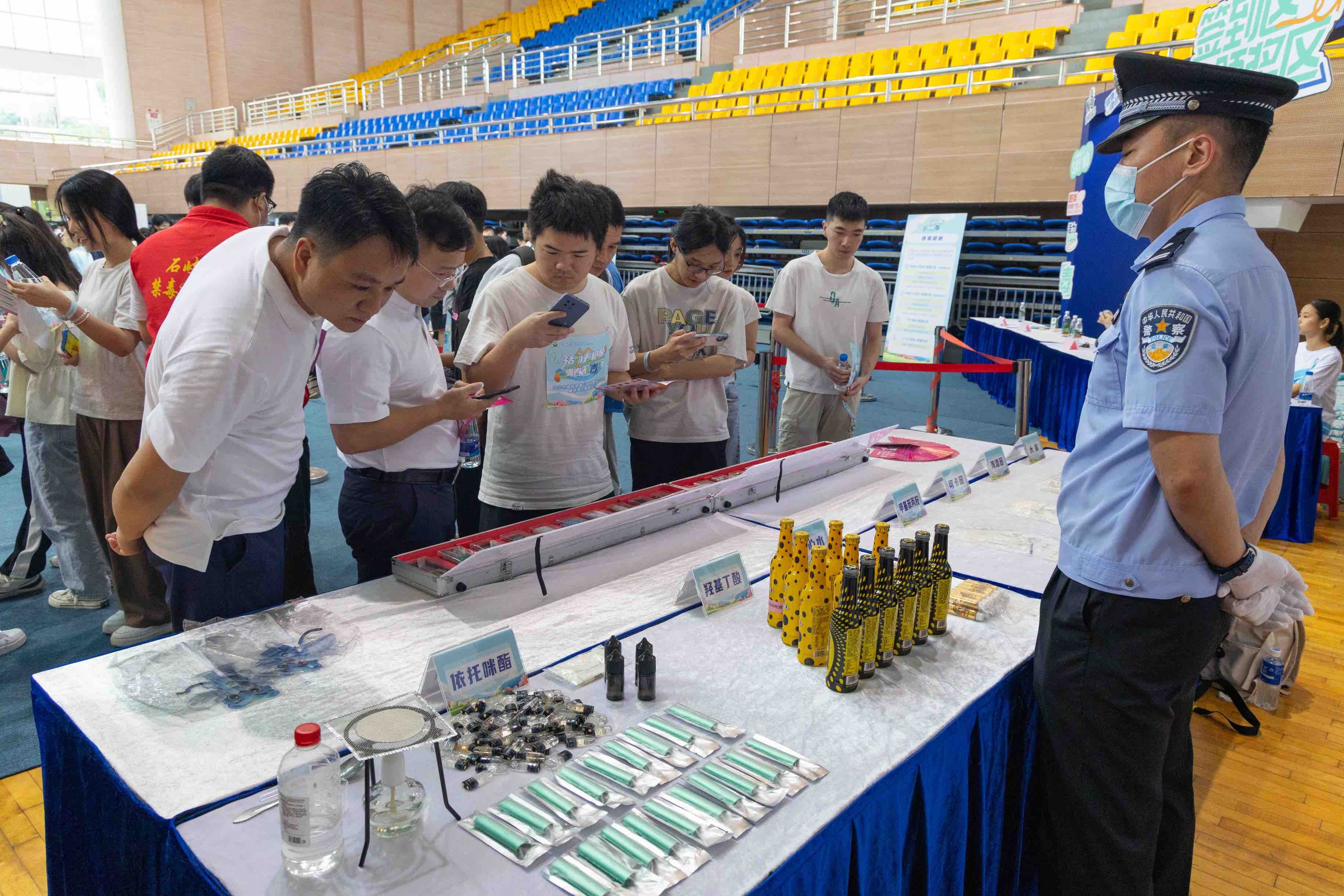 活動現場,同學們了解禁毒知識。通訊員供圖