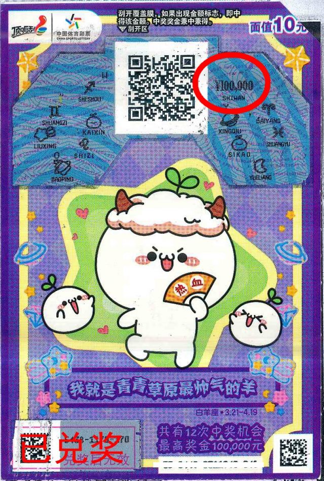 另一位幸運者來自中山市南區槎橋路朗晴假日17幢2卡的4418018278體彩實體店內。購彩者趙先生(化名)以10元面值的體彩頂呱刮十二星座票種,獲得了最高獎金10萬元,為地方貢獻稅金2萬元。