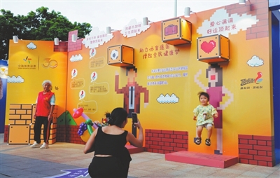 主題活動現場氣氛火熱,各項互動游戲備受歡迎,尤其是歐洲杯快樂操場環節,豐富的足球元素讓不少體育迷和小朋友流連忘返,紛紛拿出手機留影;“頂”起來拍照墻,歡樂氣氛十足的互動區域,讓參與其中的市民充分感受體育的魅力。