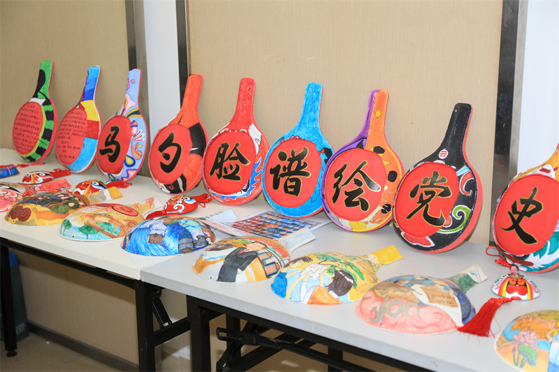 中國(guó)共產(chǎn)黨成立100周年標(biāo)識(shí)、井岡山勝利會(huì)師、南昌起義、嘉興游船上舉行的中共一大、萬(wàn)里長(zhǎng)征路……分享會(huì)現(xiàn)場(chǎng),刻畫了一個(gè)個(gè)黨史故事的木瓢排列成行,十分引人注目。“這是國(guó)家級(jí)非物質(zhì)文化遺產(chǎn)——馬勺臉譜。它是陜西的傳統(tǒng)民間藝術(shù),以馬勺作‘紙’,將社火臉譜以彩繪的形式繪制在上面。”馬勺臉譜傳承者、沙溪中學(xué)老師馬世杰介紹。作為一名美術(shù)老師,馬世杰通過(guò)民間藝術(shù)的再創(chuàng)新來(lái)引導(dǎo)學(xué)生學(xué)習(xí)黨史,在他的帶領(lǐng)下,沙溪中學(xué)的學(xué)生將南粵特色、中山元素、國(guó)風(fēng)動(dòng)漫等融入馬勺臉譜的創(chuàng)作中。“繪制黨史故事前,我們查閱了大量資料,并向?qū)<覍W(xué)者請(qǐng)教,在創(chuàng)作中引導(dǎo)學(xué)生們了解、學(xué)習(xí)黨史。”